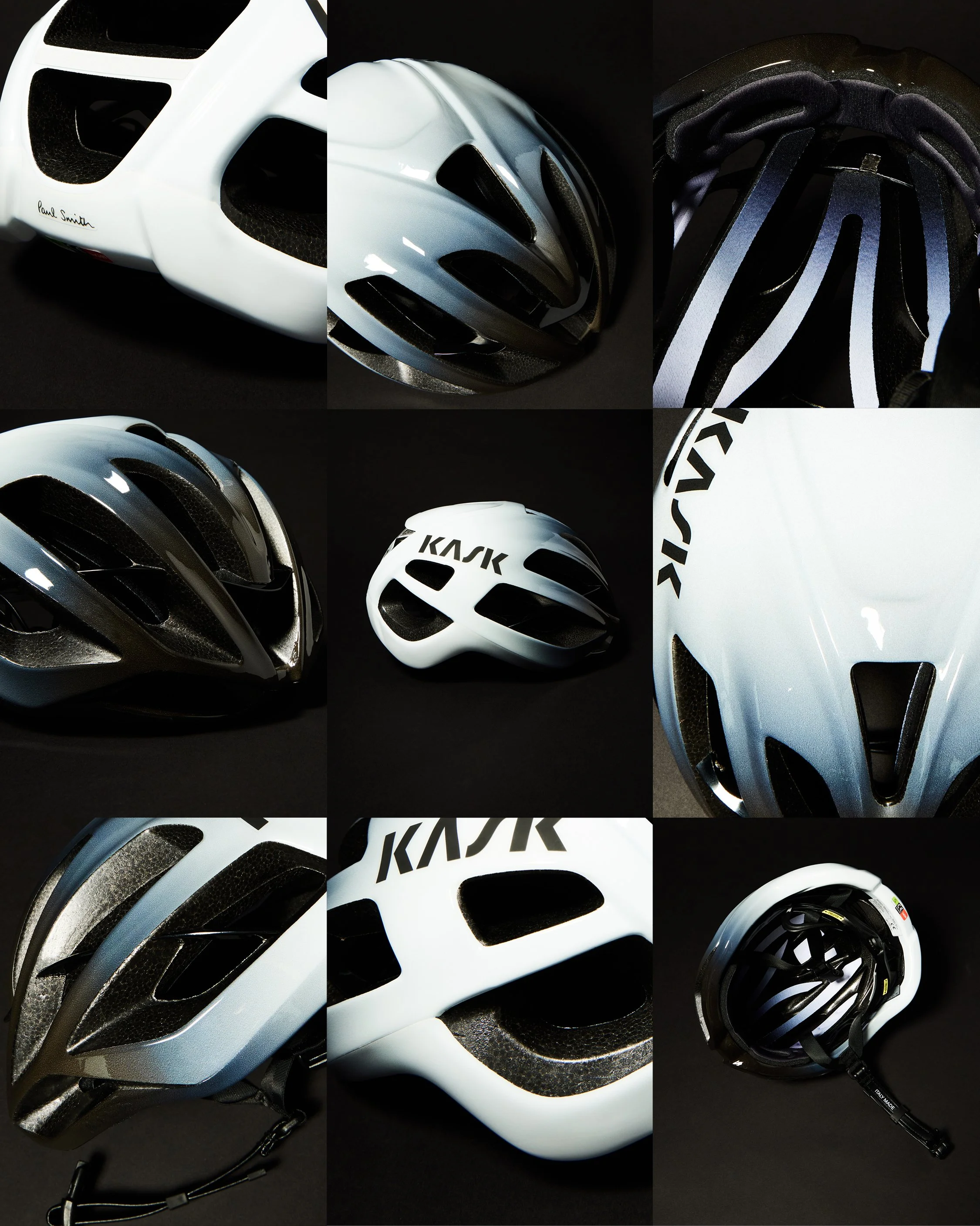 Paul Smith SS25 cycling campaign. Debuted at Herne Hill velodrome in south London, worn by six real cyclists. Supporting graphics for the Paul Smith collaboration with Kask helmets.